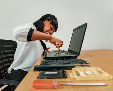 Com o tempo, é comum que a carcaça dos notebooks apresente danos como trincas, quebras nas dobradiças, partes soltas ou até mesmo falta de parafusos. Esses problemas, embora pareçam apenas estéticos, podem comprometer seriamente o funcionamento do seu equipamento.
