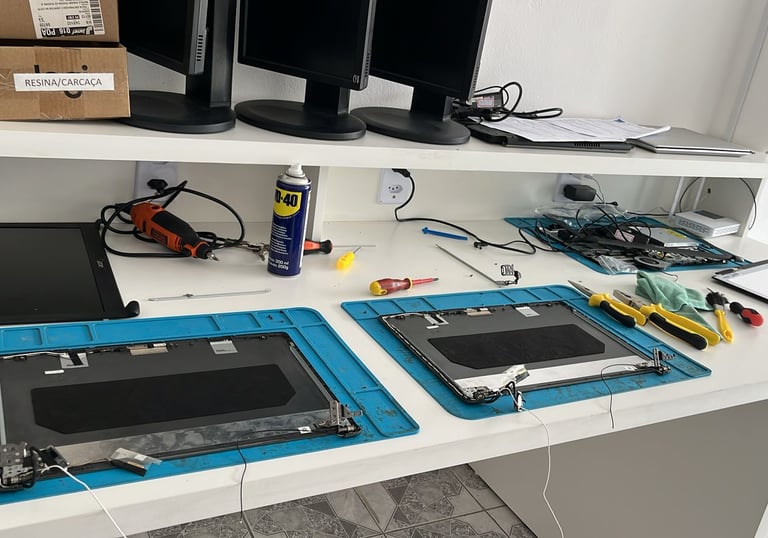 Na Casa do Computador, realizamos reparo completo de carcaças de notebooks, com atenção total à segurança, resistência e estética do seu aparelho. Trabalhamos com resinas, solda plástica, reforços internos, substituição de partes e acabamento refinado para garantir que seu notebook fique como novo — ou até melhor!